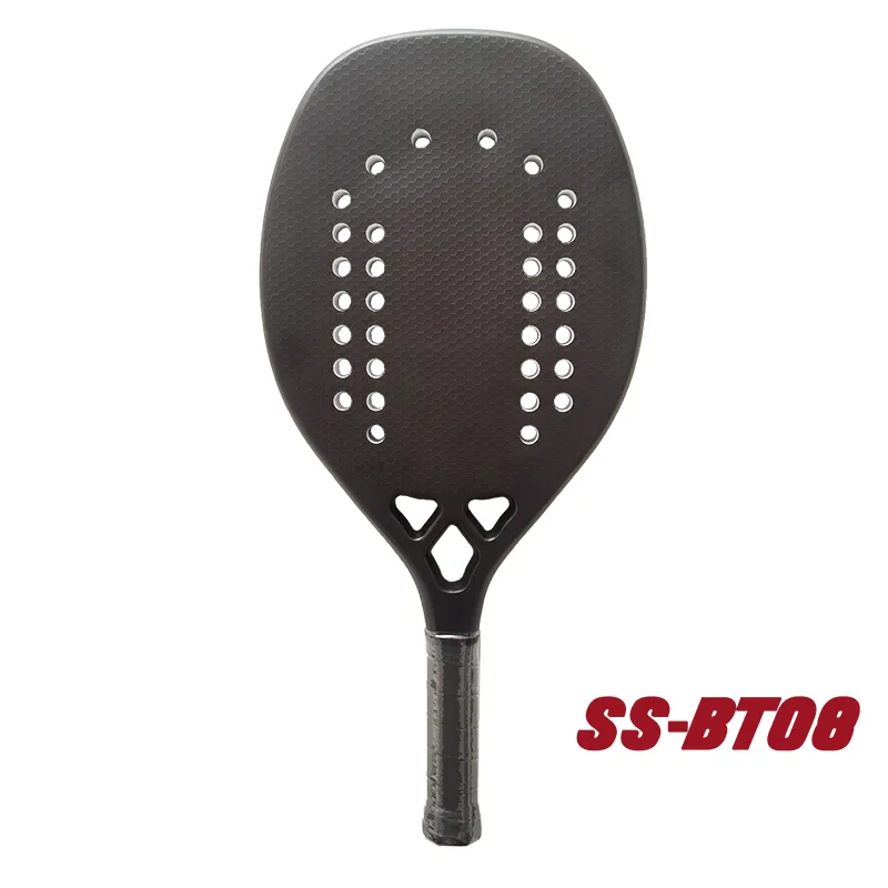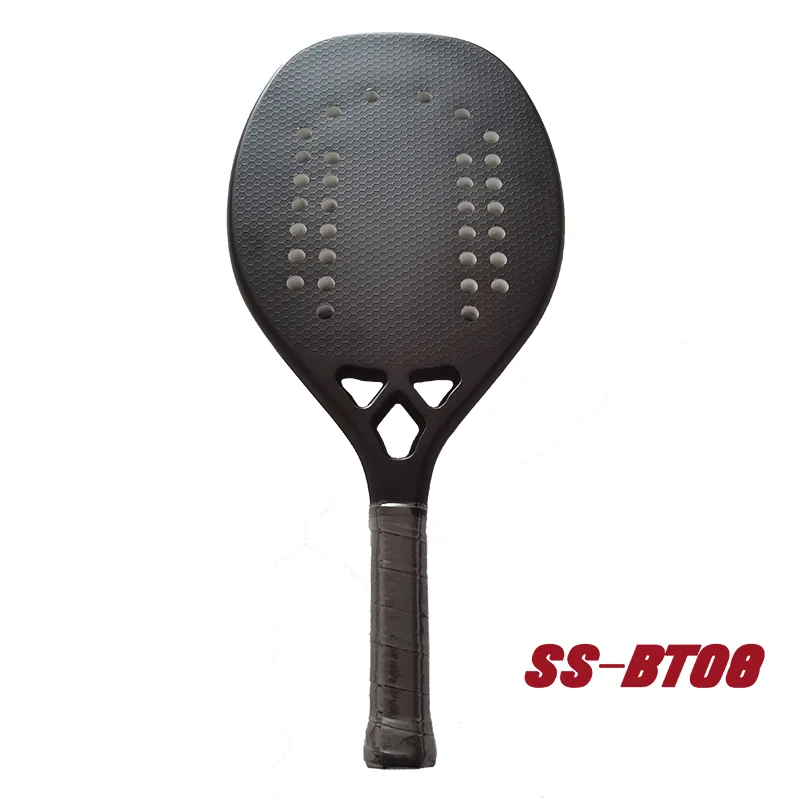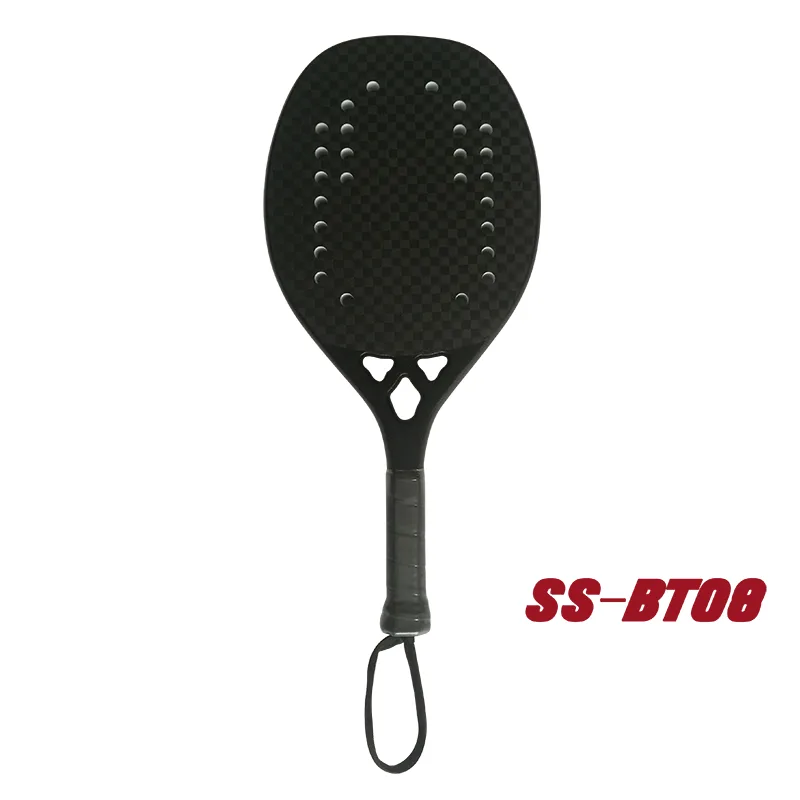 20мм рекет за тенис на пескуМодел СС-БТ08 је рекет за падел са пуним угљеником. За стандардни СС-ПР01, предњи материјали су карбонска влакна, материјал оквира је пун угљеник и ЕВА меморијско језгро. Карбон се широко користи у рекету за падел, угљеник је једноструки, са јаким регидитетом, издржљивији од фибергласа.